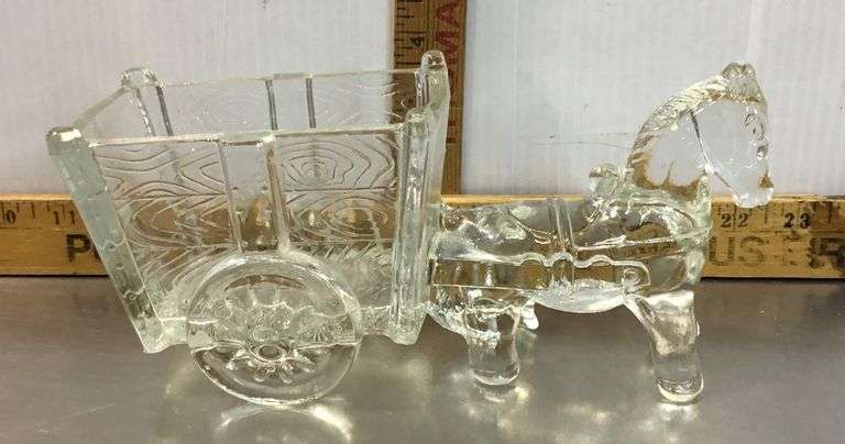 LOT 104 - Clear Pressed Glass Donkey & Cart Planter