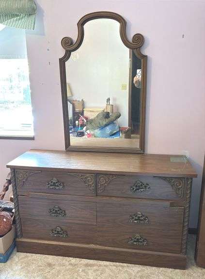 LOT 300 - Six Drawer Dresser & Mirror 31”T X 55”W X 17”D