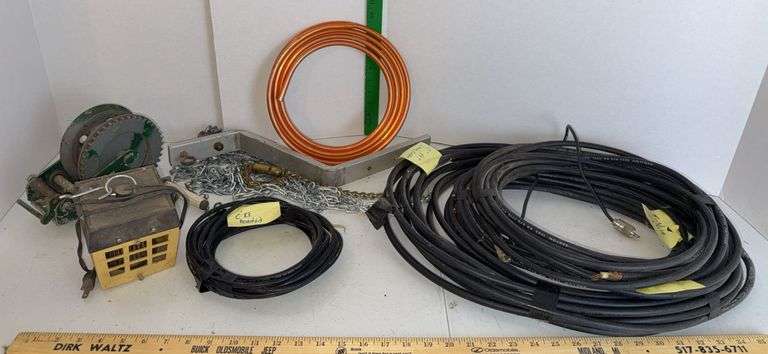 LOT 121 - Copper Tubing, Cables, Winch & More Items