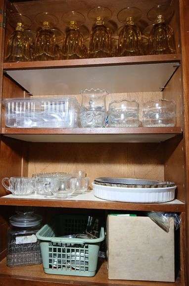 LOT 272 - Cupboard Clean Out, 17 Old Williamsburg Amber Goblets and More