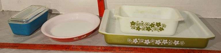LOT 276 - Pyrex, Spring Blossom, Flamingo Pink Pie Dish and Blue 502