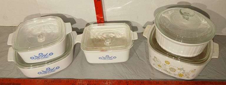LOT 278 x2 - Corning Ware Dishes with Lids (chips on lids)