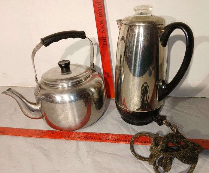 LOT 280 - Tea Kettle and Faberware Electric Coffee Percolator