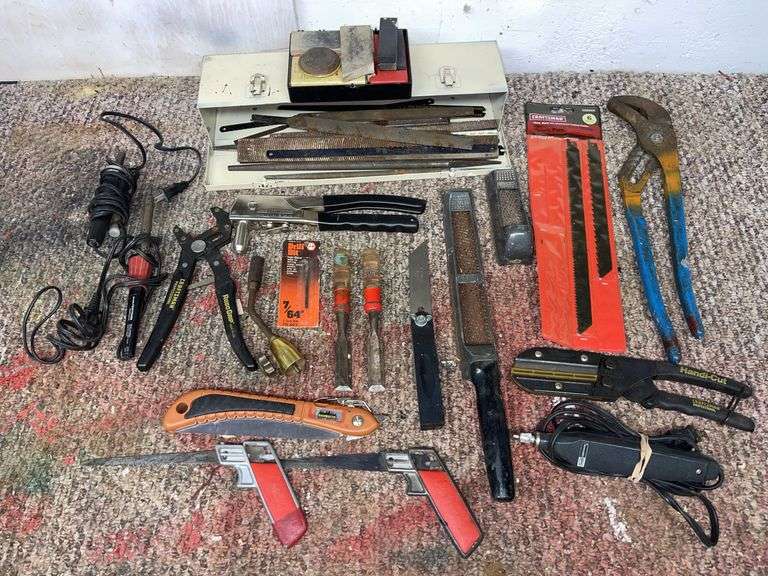 LOT 169 - Hand Files, Stanley Surform & Wood Chisels, Soldering Irons, Channellock, Torch Tip & More