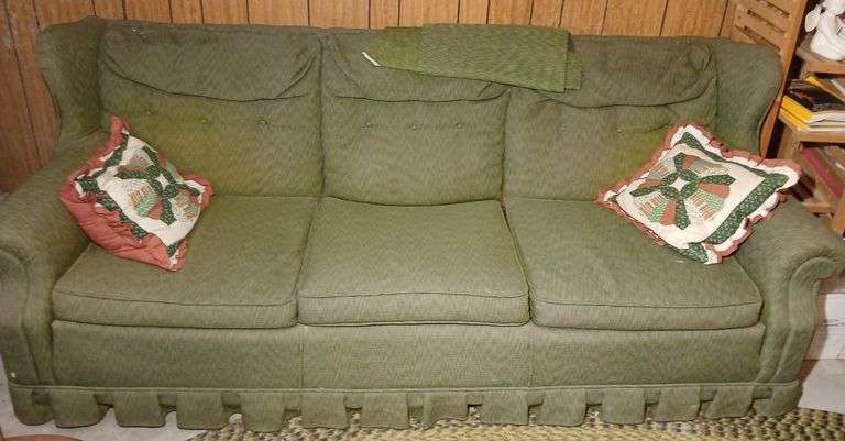 LOT 412 - Green Couch 82" (located in basement, bring help for loading)