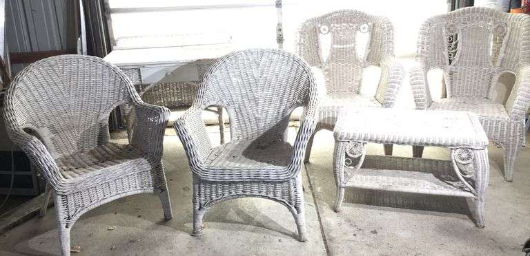 LOT 654 - Wicker Patio Funiture (4) Seats and(2) Tables