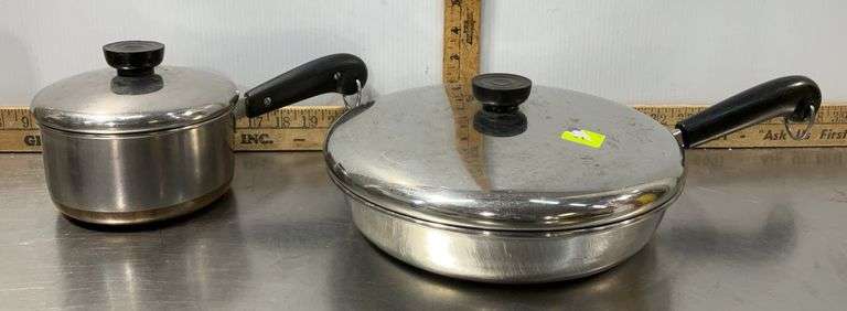 LOT 270 - 2 Revere Ware Pans with Lids 10” Frypan & 1 Quart Saucepan