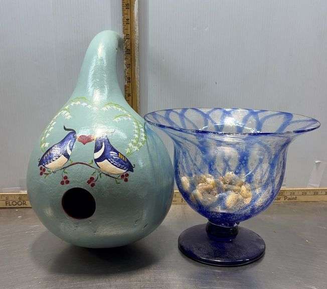 LOT 192 - Bird House, Blue Bowl with Rocks