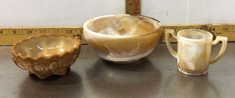 LOT 103 - 3 Imperial Glass Caramel Slag Pieces