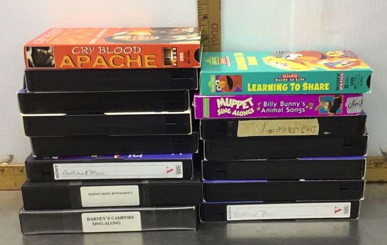 LOT 219 - Box Of VHS, Barney, Recorded Hallmark Movies and More