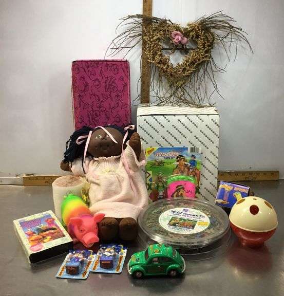 LOT 229 - Cabbage Patch Doll, 2 Porcelain Dolls, Toys, Candle Puzzle, VHS and Stampers