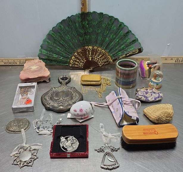 LOT 250 - Women Hand Fan, Shoe Brush, Ornaments, Hair Clips