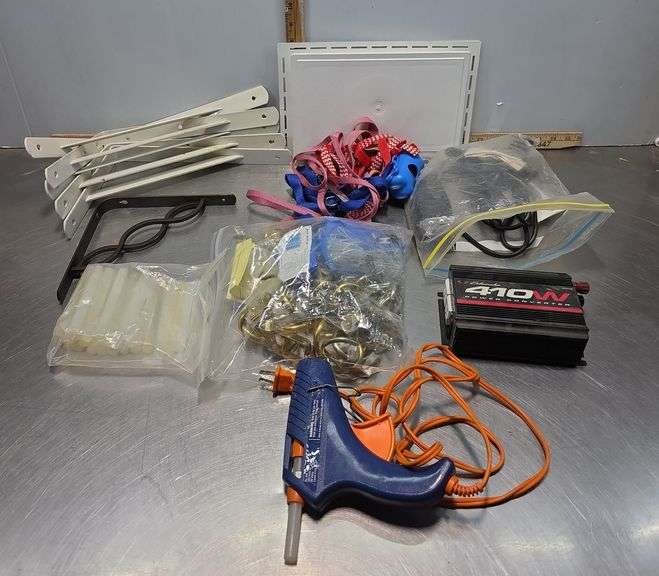LOT 263 - Glue Gun, Metal Brackets, Leashes, 420W Power Converter