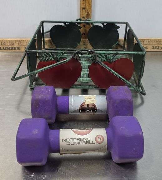 LOT 364 - 5lb Weights and Metal Apple Basket