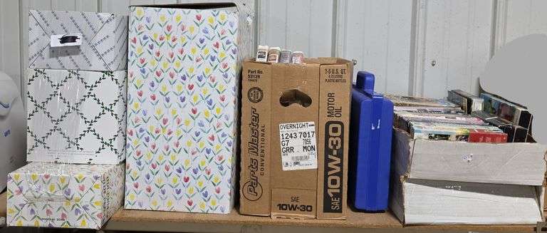 LOT 365 - Whole Shelf of VHS Tapes, Caset Tapes and Dolls