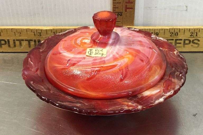 LOT 138 - Imperial Glass Red Slag Covered Butter Dish