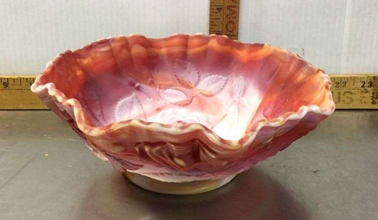 LOT 139 - Imperial Glass Red Slag With Embossed Roses Bowl