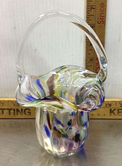 LOT 333 - Hand Blown Glass Basket (signed Boyer 1981)