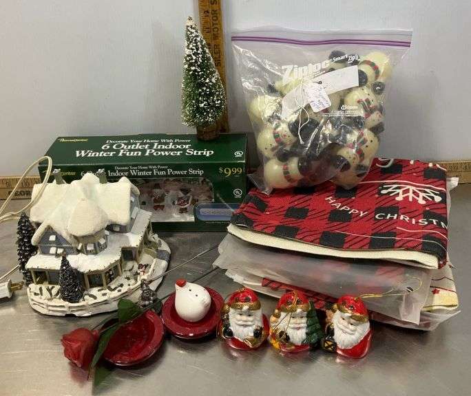 LOT 303 - Vintage Snowman Cover for Lights, Christmas Power Strip, Light Up House, Santa Bells, Pillow Cases
