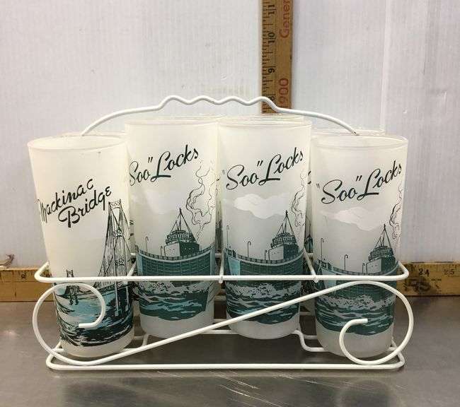 LOT 120 - Michigan Frosted Souvenir Glasses With Holder