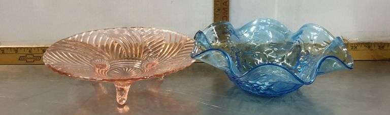 LOT 148 - Anchor Hocking Prismatic Dish and Fenton Blue Opalescent Bowl
