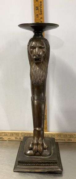 LOT 277 - Heavy Bronze Lion Candle Holder