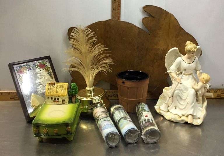 LOT 322 - Wooden Rabbit Board, Wallpaper Border, Music Boxes, Figurines and More