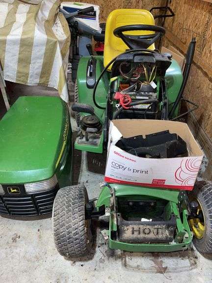 We are pleased to present the Estate of L. J. Pickens Online Auction: Steel Frame 8’x4’ Flatbed Trailer, Huskee Self-Propelled Lawnmower, Set of 5 Lyon Company Steel Lockers, Huskee 16” Gas Powered Garden Tiller, Extra Deep Metal Shelving Unit, Ridgid Heavy Duty Pipe Wrenches, Solid Wood Gun Cabinet, John Deere GT 225 Body Only- For Parts, Gibson 70” tall Stand Up Freezer, Antique Wooden Five Drawer Dresser, 2-Man 6' Crosscut Saw, 4000 lb Hydraulic Floor Jack, Sea Doo Wet Suits, Truck Bed Dog Crate, Wood Dog House, Yard & Garden Tools, Live Trap, Fishing Spears, Ski Doo 75”x33” Pull Behind Sled, John Deere Mower Deck, Thermos Propane Grill, 3.0 Peak HP Shop Vac, 4-1/2” Pony 24545 Bench Vise, Duracraft 1/2 HP All Ball Bearing Bench Grinder, Assorted Nails, Screws, Bolts & Other Hardware, 1971 Coleman Lantern w/ Metal Carrying Case, Chest Freezer, Delphos Galvanized Steel Funnel, Vintage Coleman 56 Quart Red Snow-Lite Cooler & Original Box, 46” Long Leather Wrapped Texas Longhorn Mount, Antique Fire Extinguisher, Whitetail Eight Point Shoulder Mount, Ice Fishing Supplies, Antique Hand Drills, Home Sentry 1330 Fire Safe, 1950's Dachshund Planter, Antique Wicker Fishing Creel W/Leather Straps, Lace Tablecloths & Hand Crocheted Doilies, Freezer Tubs & Other Storage Containers, Seiko Quartz Westminster Whittington Chime Pendulum Wall Clock, Samsung 55” Tv, Cushioned Glider Rocking Chair, Tan Recliner Smith Brothers Grey Three Cushioned Couch, Hamilton Beach Automatic Roaster Oven, Wooden Kitchen Table & Chairs, Wrought Iron Bistro Chair, 1968 Empire 12” Santa Blow Mold & Vintage Hard Plastic Santa Riding Reindeer light, The Franklin Mint Antique Car Coin Collection, Vintage Board Games, Marx Electric Train Set #50242, Hanging Ceiling Fireman’s Light, Fishing Tackle with Fishing Box , 3 Gallon Blue Crown Salt Glazed Stoneware Crock Red Handles & Lid & MUCH MORE!