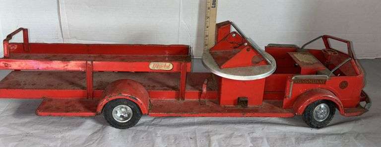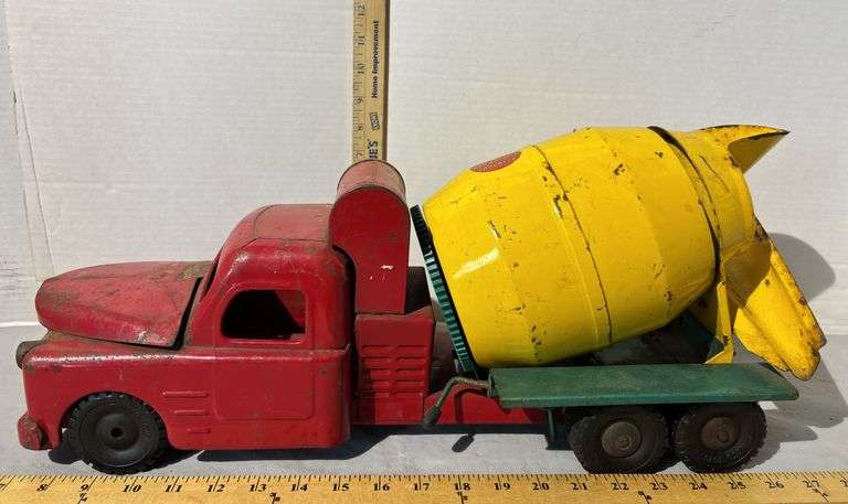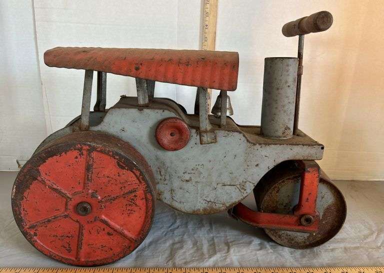 Clare Location Online Auction: 1950 Buddy L Pressed Steel Hydraulic Dumper Truck, 1930'S Keystone Pressed Steel Ride On Steam Roller, Horse Drawn Spring Wagon made in Flint Michigan, Greek Period Ceramic Urn, Vintage Brunozetti Last Supper Framed Print, Comfy Floral Sofa, Krispy Kreme Doughnut Display Cart on Wheels, Mid Century Ornate Carved Mahogany Wood Accent Table, Daisy Red Ryder Model 1938B Air Rifle BB Gun Engraved Wood Stock, LARGE Deep Blue Slag Glass, Glassbake Green Daisy and a Yellow Oval Divided Milk Glass Casserole Baking Dish, Hanging Poultry Feeders, Old Ford Motor Company tube 30 cents repair kit tin, Uranium Green Depression Glass Measuring Cup + A&J Hand Mixer Egg Beater, Vintage Buddy L Repair Unit Pressed Steel Toy Truck, Pink Depression Two Cups Glass Measuring Cup With Egg Beater, VAL-OIL SERVICE STATION OIL TIN, Pop Eye Pop Corn Tins, Wyandotte Soda Wood Crate, Dollhouse Colonel Wood Furniture, Walnut Sessions Humpback Mantle Clock w/ Westminster Chimes, 1960’s Louis Marx & Co Cave Man 6 Inch Figures, 1924 Mount Clemens Public School Directory, 1890's Antique Cobalt Blue Glass Jewelers Lamp, Doepke Rossmoyne Fire Engine Ladder Truck Model Toys, 1940 Buddy L Army Transport Die Cast Steel Toy Truck & MUCH MORE!
